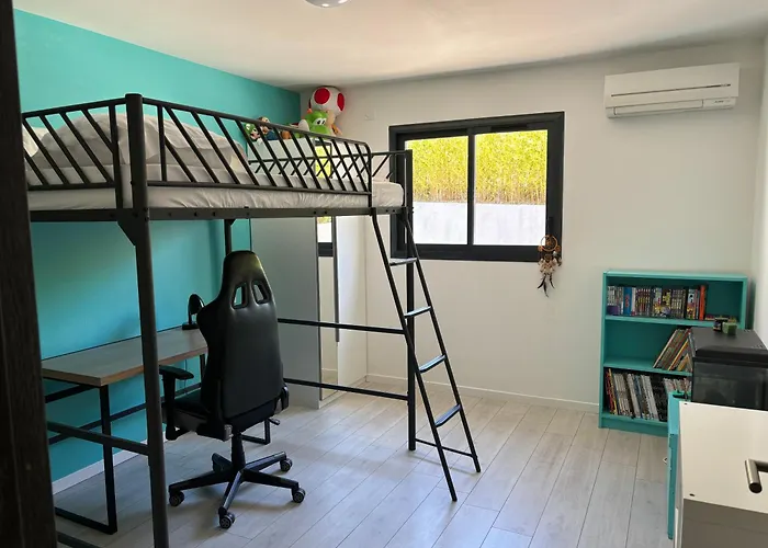 De villa is op 10 minuten met de auto van het Île des Embiez, terwijl luchthaven Toulon-Hyeres binnen 39 minuten rijden ligt. Het Parc de la Méditerranée is op 4,1 km afstand van deze villa.